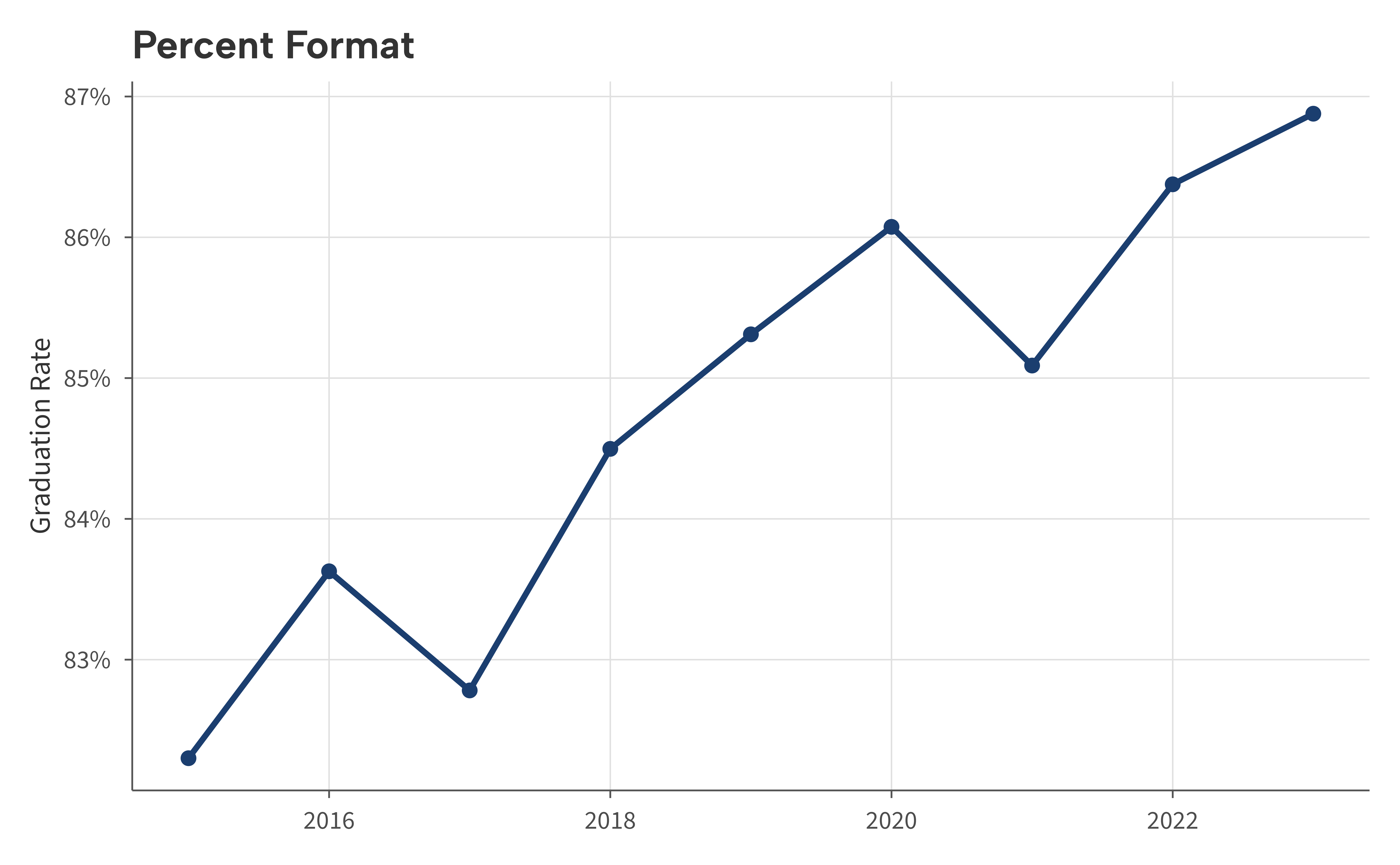 labs(title = "Percent Format", x = NULL, y = "Graduation Rate") +