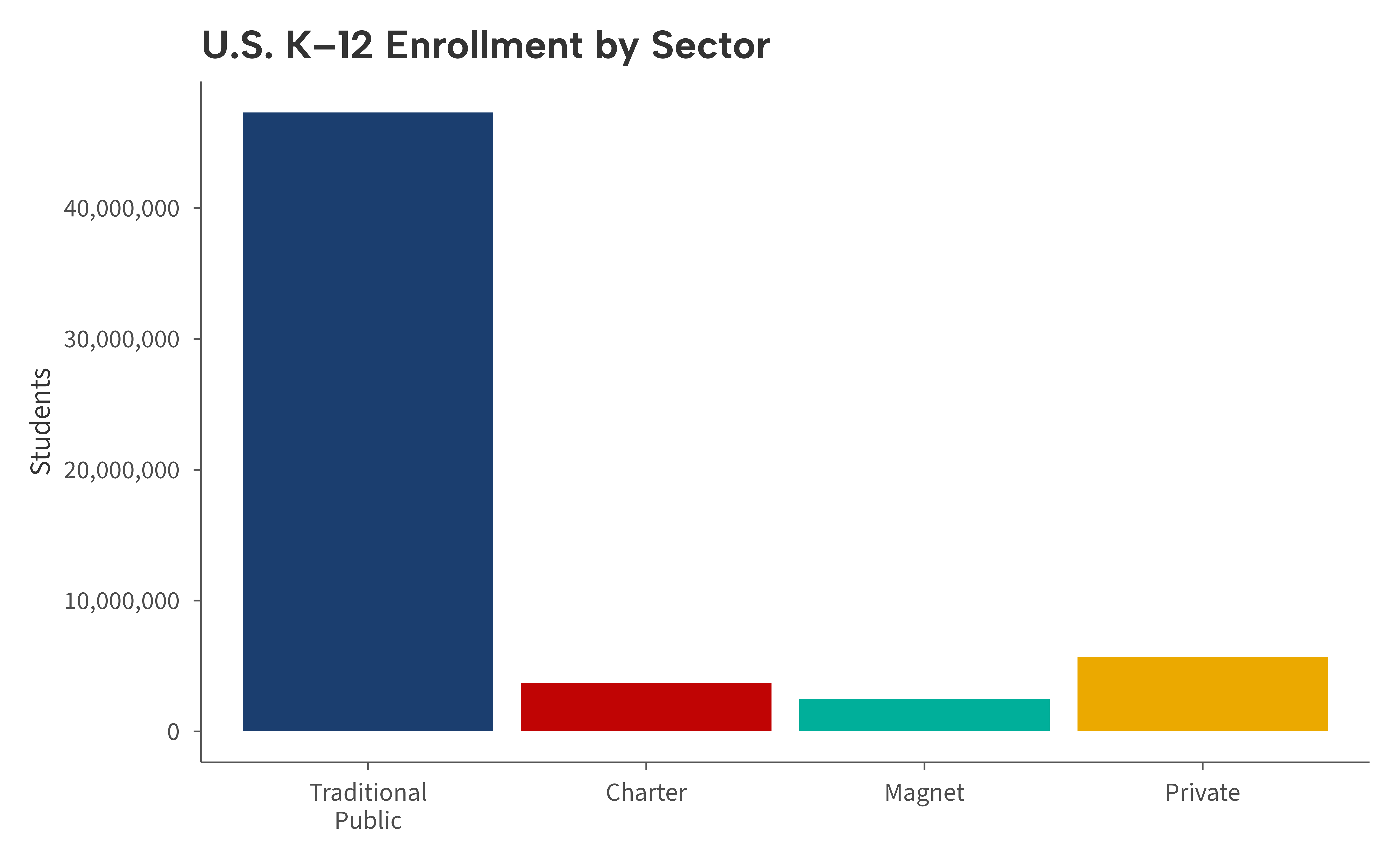 ggplot(enrollment, aes(type, students, fill = type)) +